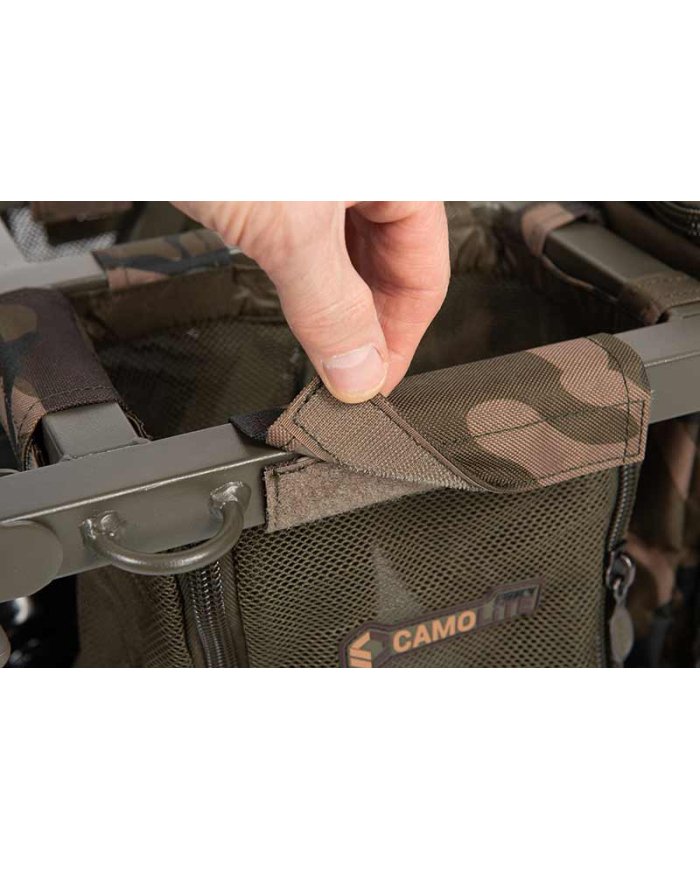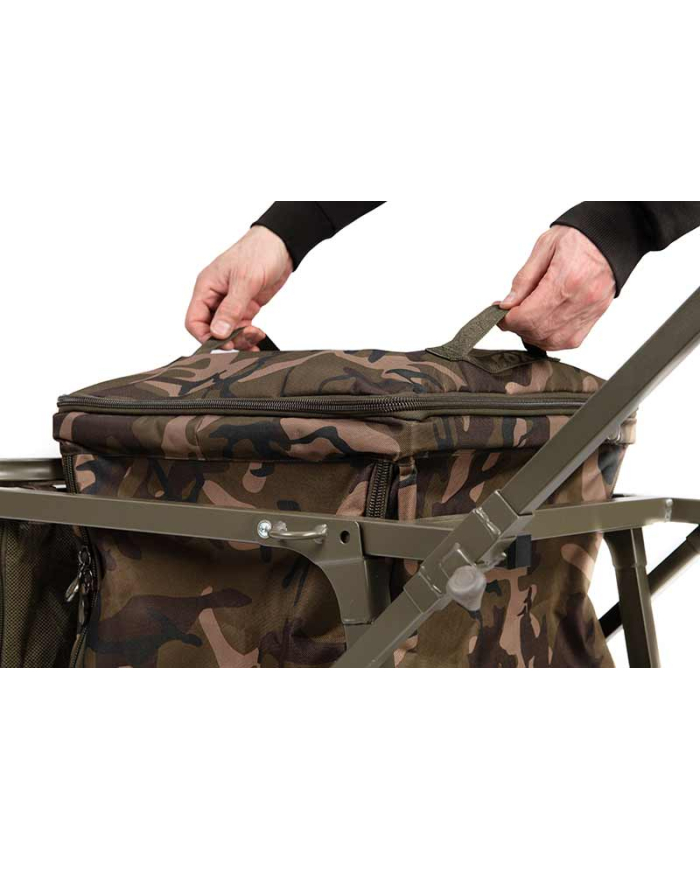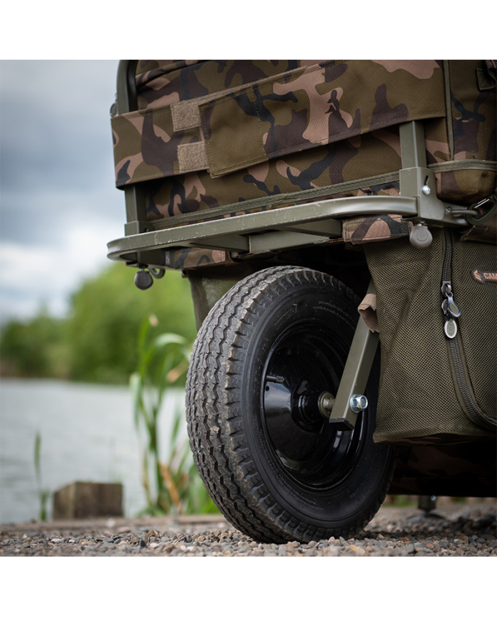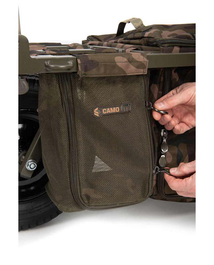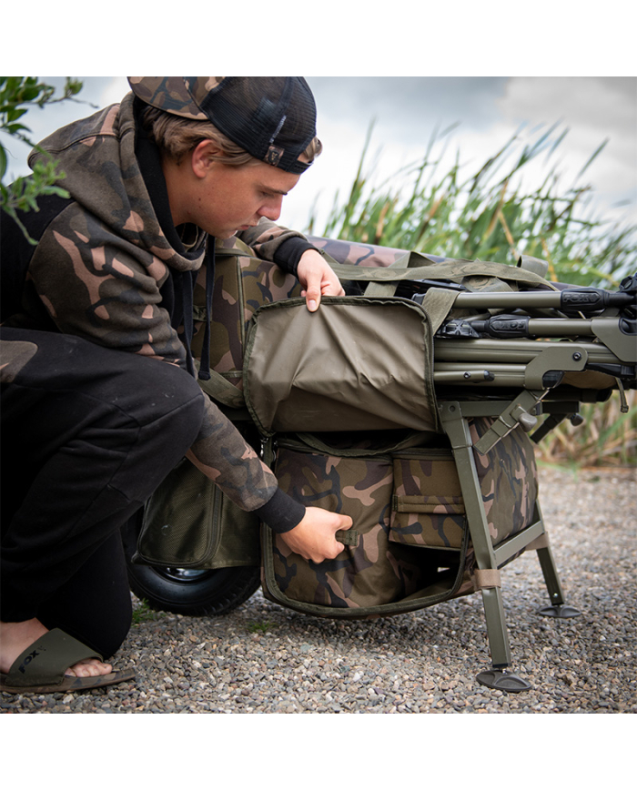 - Supplied with camo Under Barrow Bag that simply ‘drops in’ to the centre of the frame, which is compatible with the new Fox Camolite luggage