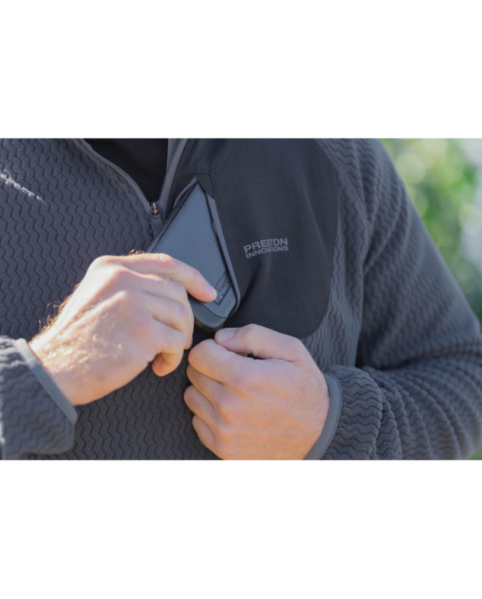 A lightweight yet warm quarter-zip fleece with a waffle-texture finish. Designed with a chest phone pocket and elasticated cuffs — the perfect mid-layer for cooler conditions.