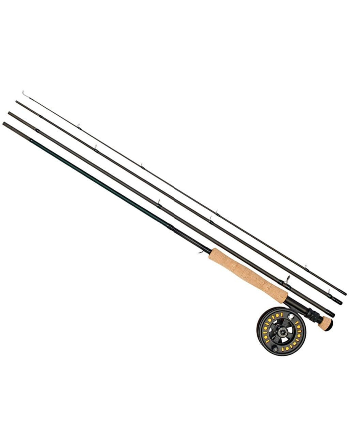 Daiwa have been producing its tackle since the 1950s and are renowned for their technology enhanced tackle. The Tournament Pro range offers coarse and match anglers of the UK a near perfect suitability to their requirements with its host of features. Made with medium fast action blanks and a four-piece construction, the Daiwa fly rod offers a strong crisp feel that is ideal for general fly fishing. The Trout fly rod comes in a variety of lengths and ratings to help pick the correct line for that rod. There is an 8ft rod length with a AFTM Fly Line rating of #4, 8ft6, with a #5 AFTM rating, a 9ft with #5 rating, 9ft with a rating of #6, a 9ft with a rating of #7, a 9ft6 with a #7 rating and lastly a 10ft model with #7 rating. All variations come in four sections for easy commuting. The Daiwa fly rod also sport a low glare matt tape finish for improved weight and crisper action. The matt tape will also give you less reflection of light onto the water and potentially spooking fish. There is also a matt black aluminium reel seat, aluminium oxide stripper guides. The Trout fly combo rod also sport a traditional cork handle which is great for insulation of your hands as well as a lighter feel to your rod butt. If that was not enough, for anglers often on the move there is a hook keeper just above the handle.