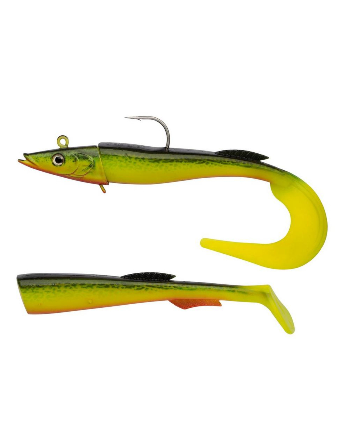 The life like Power Sandeel is a deadly lure for coalfish, pollock, seabass, cod and halibut! Even at a very slow retrieve rate the Power Sandeel has an enticing action with either the equipped curly tail or extra provided paddle tail. Power Bait scent gives this lure the edge!
