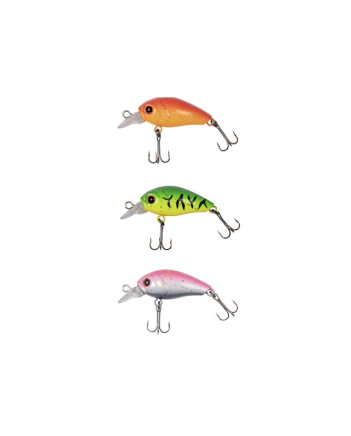 An erractic action mini crank bug lure for trout fishing. Three per pack with bright colours for aggressive fishing.