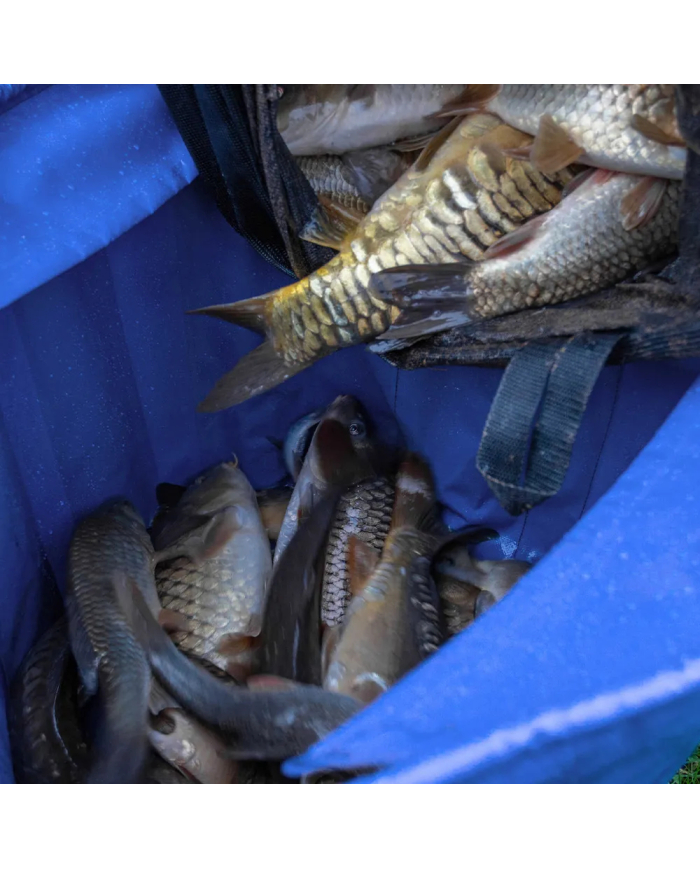 Features: Heavy-duty weigh handles, internal flaps for fish containment, holds its shape for easy filling, fish release handle.