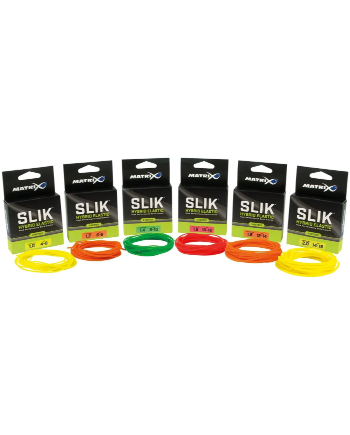 Matrix Slik Elastics, SLIK Elastic is a revolutionary new elastic range offering the perfect hybrid between solid and hollow. It offers all of the advantages of hollow elastic without the possibility of flattening or air bubbles. SLIK offers unrivalled stretch properties with ultra-quick retraction. Super smooth coated finish creates minimal friction for perfect performance in all weathers. Sizes