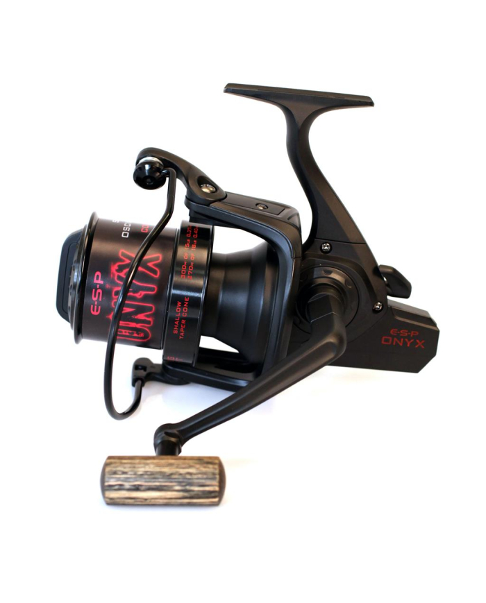 ESP Onyx Big Pit Reel, ESP is a brand that prides itself on its close connection with some of the biggest and most prolific anglers that stalk the UK’s waters – and it is in connection with these big names that the brand has chosen to develop its first carp reel. The Onyx is a traditional big pit in the truest sense of the world. Based on the original big pit functionality as a sea fishing reel, ESP have done much more then just ‘carped-up’ the cosmetics – which is more than can be said for other brands on the market! The brand identified key crucial areas where the needs of sea anglers and carp anglers diverged and focussed on modifying the excellent sea fishing big pit functionality to fit with body of a reel that meets carp fishing needs. Designed with long range distance fishing in mind, the ESP Onyx Big Pit has been fitted with a slow oscillating spool. This ensures that you can achieve perfect line lay, which allows you achieve those vital extra yards when you’re casting to far out features. These reels come with spools of varying depths, all of which can hold 300m of line (in their respective ideal breaking strains). This was a key decision by the team as it ensures that anglers can use one 1000m spool of line to load up all three of their carp reel – without having to worry about backing line or buying additional line to complete the set. This is just one example of the practical and intuitive thinking that went into the construction of these reels. The ESP Onyx Big Pit has been fitted with Rapid Lock drag, enabling you to switch between freespool and fight mode in a mere half turn. This ensures solid hooksets each time. The reel is also supplied with an additional ‘fine drag’ adjuster, which offers incremental drag adjustment. The line clip on the reel ensures that you don’t experience any damage on your line, even with fine 10lb lines. The ESP Onyx has been finished in a modern all-black and features a folding handle with carpy dark wooden handle knob.