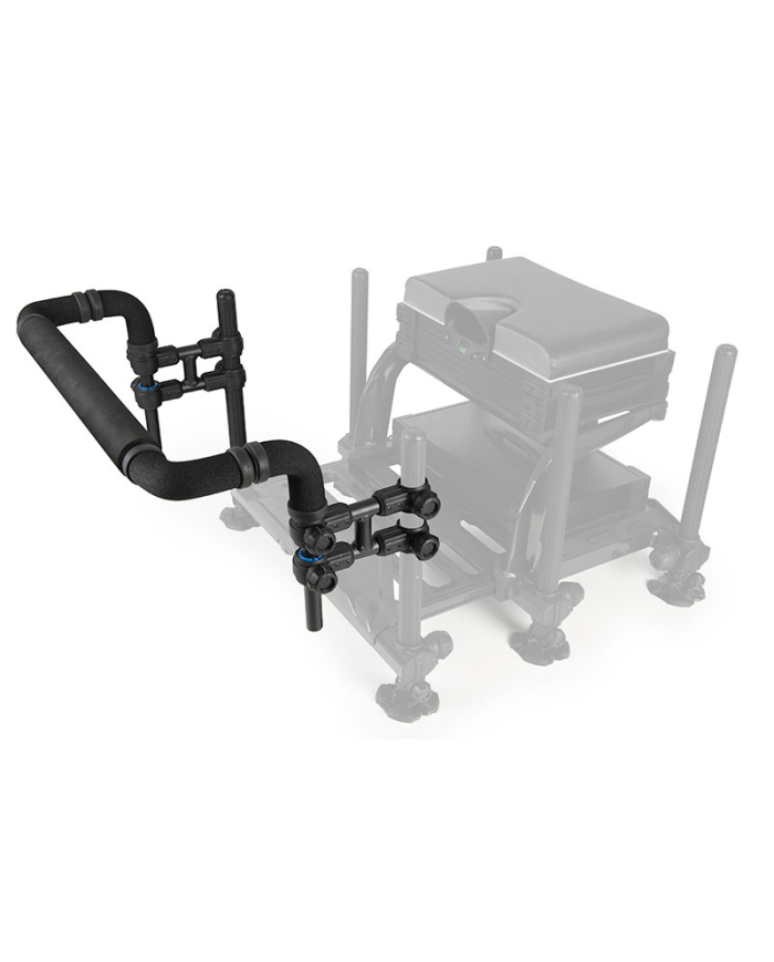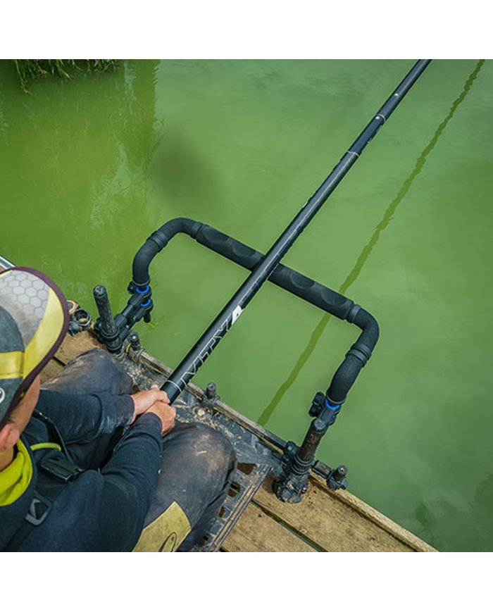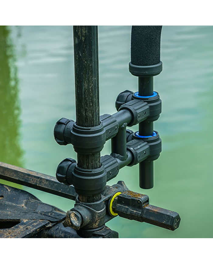 This really helps when fishing with long lengths, whilst the double knuckle is stable, with the fixing points preventing any flex. EVA can be used either smooth, or scalloped, as the arms rotate! Additional clearance allows easy access to your keepnets.